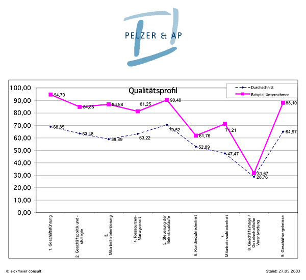 Das erstellte Qualitätsprofil lässt darüber hinaus noch Rückschlüsse auf die eigene Positionierung im Vergleich zum Branchendurchschnitt zu.