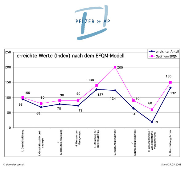 Die erzielten Werte wurden zur besseren Vergleichbarkeit nach den Kriterien des EFQM umgerechnet.