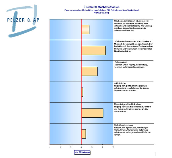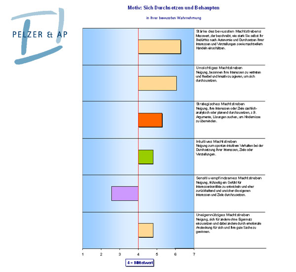Wie sieht die Durchführung der EOS-Analyse aus?Die Analyse führen Sie auf Ihrem Computer online oder stationär durch. Sie können die EOS-Analyse bequem vom Büro oder von zu Hause aus machen und benötigen dafür zwi-schen 2,5 und 3 Stunden. Die EOS-Analyse setzt sich aus mehreren Teilen zusammen. Der erste Teil enthält unter anderem Fragen zu Ihrer persönlichen Qualifikation und zu Ihrem derzeitigen beruflichen Umfeld. Der zweite Teil stellt Ihnen offene Fragen zum Managementalltag und bittet Sie um Ihre persönliche Einschätzung. Der 3. Teil arbeitet mit Bildern, die offene soziale Situationen darstellen, die Sie kommentieren und weiterentwickeln (OMT: Operander Motiv Test). Beispiel für eine Bildertestfrage:Im Rahmen der EOS-Analyse werden Sie aufgefordert unterschiedliche Situationen einzuschätzen und zu beschreiben. Beispiel für eine Selbstbeurteilung:In der Regel sind die Fragen so gestellt, dass Sie nicht lange überlegen müssen und spontan antworten können. Eine Überprüfung Ihrer Ant-worten findet im Rahmen von vielfältigen Kontrollfra-gen statt. Wie wird das Ergebnis der EOS-Analyse dargestellt?Die EOS-Analyse differenziert zwischen bewussten und unbewussten Motiven Überblick: Macht MotivationEine enge Passung zwischen Stärke der Motivation, persönlicher Stil, die Fähigkeit zur Selbstregulierung und Stimmungen. Motiv: Durchsetzungsvermögen und die eigene Position nachhaltig wahrenIn Ihrer bewussten Wahrnehmung. Was unterscheidet die EOS-Analyse von anderen Verfahren?EOS differenziert zwischen Erst-, Zweit- und Drittreaktionen