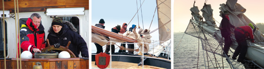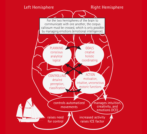 Onboard, your brain is forced to counter the permanent irritation of the ship pitching up and down as you try to catch your balance. This extra energy required for movement overflows and allows your feelings and intuition to come to the fore. This effect also supports the trainers working onboard who can use their intuition for better individual counseling.